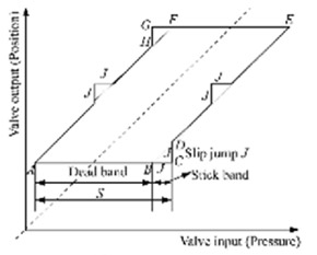 閥門粘滯指的是閥門在運行一段時間后,由于閥桿與填料之間產生較大的靜摩擦,從而引起的非線性故障。在當今系統作業中,大部分控制回路的計算方法還是采用傳統的 PID 控制計算法。而在 PID 控制回路中,需要控制器花費較多的時間進行反復調節才能使得其達到一定的設定的狀態,在這個過程中,控制器會不斷的改變方向。當有氣動調節閥的回路上有粘滯故障時,控制器就會改變方向,而閥門就會進一步發生粘滯現象。而這種情況一直會延續到控制器的輸出大于某個數值(S)時,閥桿才會產生為某個(J)大小的跳動(參照下圖)。在這個無法估摸的過程中,調節量產生偏差則是在所難免的。而為了消除這個偏差,控制器就會再次發生改變,粘滯故障便會再次發生,最終導致了控制變量在以設定的值的上下來回波動震蕩。因此 PID 是引起數值震蕩的主要原因。