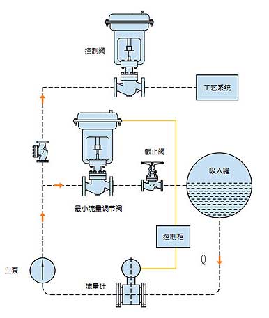 現(xiàn)代工業(yè)設(shè)備工藝過程中,要求離心泵基本上都是在變流量的狀態(tài)下工作,這就需要在工藝過程中有設(shè)置自動(dòng)控制設(shè)備。然而咋離心泵在低于負(fù)荷運(yùn)行時(shí)會(huì)出現(xiàn)過熱、嚴(yán)重噪聲、不穩(wěn)定和氣蝕而引起泵的損壞。這是需要一種自動(dòng)再循環(huán)設(shè)備,在泵低于負(fù)荷運(yùn)行時(shí),通過旁路實(shí)現(xiàn)泵最小流量回流循環(huán)。